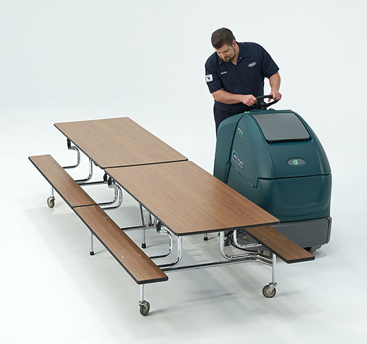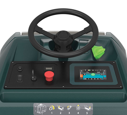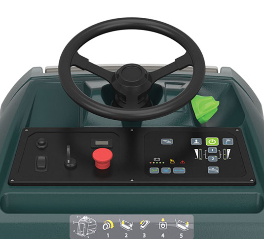 • Operate comfortably and easily with ergonomics and controls designed for a stand-on scrubber.